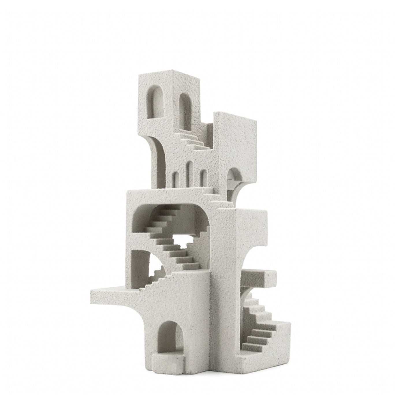 An exploration of form and proportion through sculptural design, the Decorative House share the outer façade of a multi-story dwelling in a structured and enticing style. A minimalist yet expressive interpretation of shape, and finished with a textured surface and monochrome appearance that enhances its bold design, this piece is perfect for styling on shelves, consoles or mantels and layering with other decorative objects.