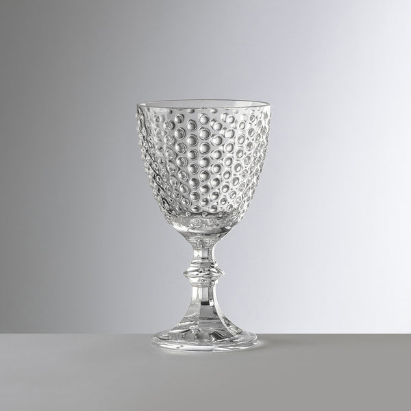 Combining a luxurious look with endless practicality, the Sancho Water Glass features an enticing and tactile pattern composed of a raised, dotted motif that recalls traditional styles, while its bold shape puts this piece squarely in the modern. Specially designed to depict casual elegance, the Sancho is a spaciously-sized tumbler; attractively aesthetic, easy to hold, and pleasing to use.